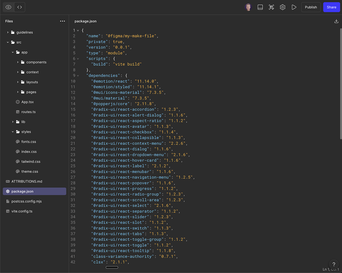 Figma Make generates basic code alongside its UI designs. You can inspect and adjust this code directly in the tool.